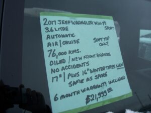 2017 Jeep Wrangler Sport $21,999.00 3.6 litre, automatic, air, cruise, new tires, 76,000kms. oiled, no accidents, warranty.